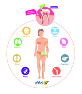 - Le lien santé orale/santé cardiovasculaire réside clairement par la participation de l’inflammation orale sur le développement athérosclérose causant infarctus du myocarde et accident vasculaire cérébral. Le traitement parodontal entraîne une réduction des marqueurs biologiques de l’athérosclérose et réduirait le risque d’évènements cardiovasculaires. (voir fiche cardiovasculaire)